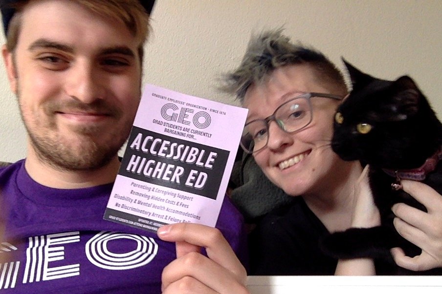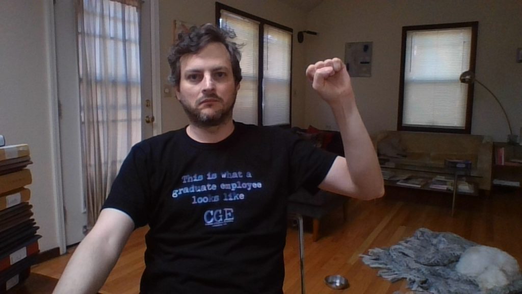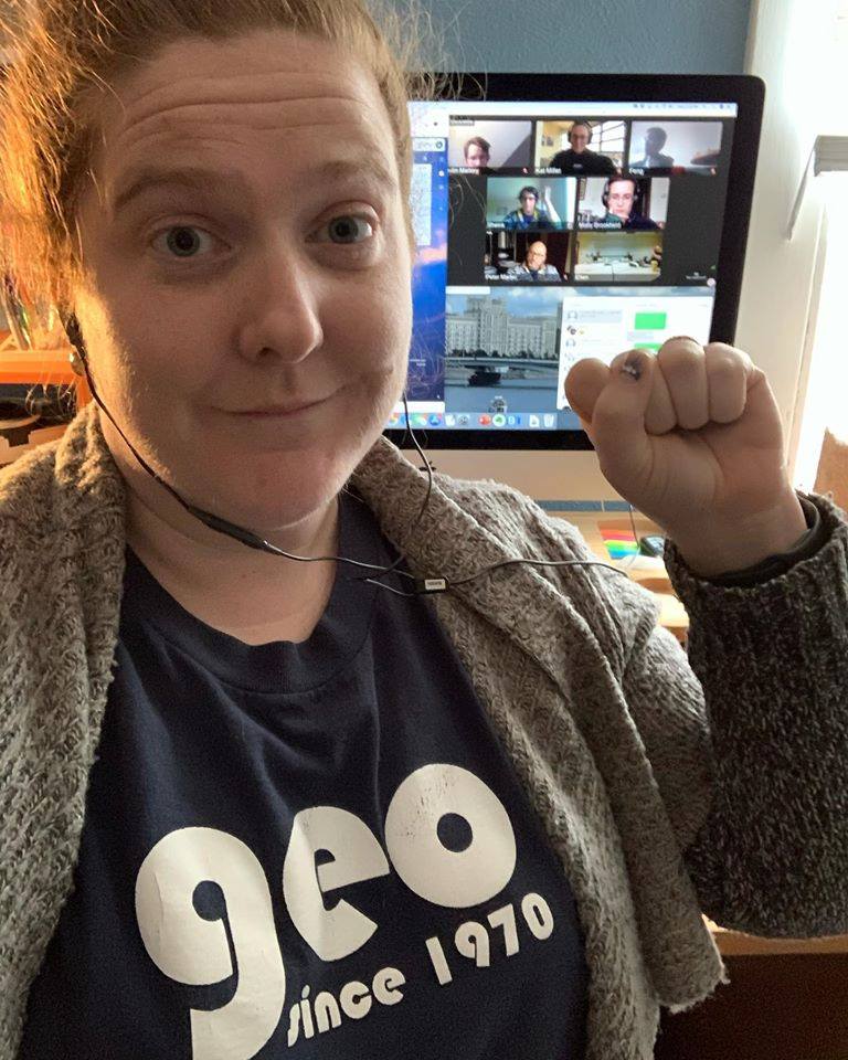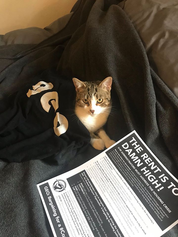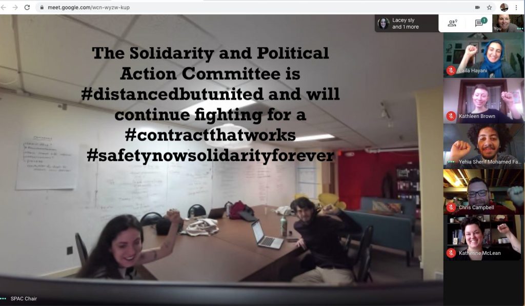 GEO takes the COVID-19 outbreak very seriously, and is innovating ways to continue to organize while social distancing. Starting today, we are conducting a Virtual Sit-In as one of several online actions that will take place over the course of this week to further GEO’s bargaining campaign. This time of crisis highlights the need for strong worker protections including medical leave, family leave, job security, health care coverage, GSI training, and more. As graduate students across U-M work hard to transform their courses for online learning and to conduct their research from home, we all remain energized to protect our benefits as workers and enhance the contract going forward. Below are images of our virtual sit-in, and you can see more on our Facebook page and head to our Twitter account to see what our members have to say. [email commchair@geo3550.org with a photo you’d like added to this album]